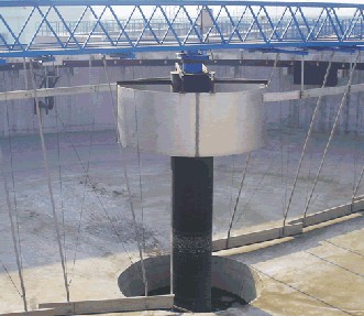 刮泥機,是一種排泥設備。組成部分:刮泥機由桁車、刮泥耙、撇渣板、驅(qū)動裝置和自控柜等到組成。分類:刮泥機主要有中心傳動刮泥機、周邊傳動刮泥機。中心傳動刮泥機主要由工作橋、傳動裝置、穩(wěn)流筒、傳動軸、刮臂、刮泥板等組成。該機設有橫跨池子的固定平臺,工作時其整機載荷都作用在工作橋中心;污水經(jīng)池中心穩(wěn)流筒均流到四周。隨著過流面積增大而流速降低,污水中的沉淀物沉淀于池底,刮泥機將沉淀的污泥刮集到中心集泥坑中,利用水壓將其從污泥管中排出。該機結(jié)構(gòu)簡單,傳動平穩(wěn),動力消耗低,刮泥效果好,是一種理想的排泥設備;周邊傳動刮泥機用于城市污水處理廠、自來水廠以及工業(yè)廢水處理中輻流式圓形沉淀池和濃縮池中,排除沉降在池底的污泥和撇除池面的浮渣。應用領(lǐng)域:刮泥機主要應用于鋼鐵、冶金、礦山、水處理等行業(yè)。